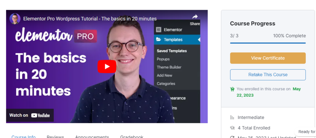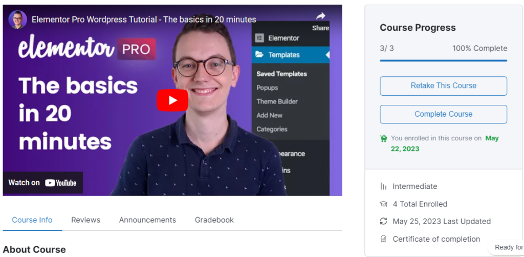 Once you have fulfilled all the course requirements, you will be presented with two options: “Retake Course” or “Complete Course.” If you are not satisfied with your result, you can choose to retake the course and aim for success. If you have successfully passed all the course criteria, simply click on “Complete Course” to finalize your learning journey and download your certificate.